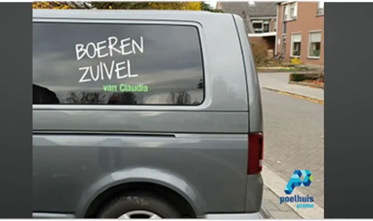 Voor boerenzuivelvanclaudia deze bedrijfs bus belettert naar wens van de klant.