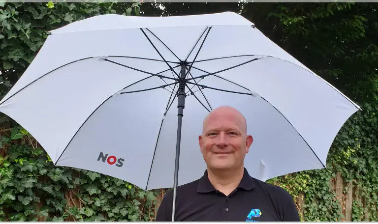 Voor de NOS deze mooie witte paraplu’s van Impliva bedrukt en geleverd. In opdracht van de NOS is het logo aan de binnenkant van de paraplu bedrukt zodat, het logo altijd zichtbaar is tijdens de opname’s van het Journaal of de toer de France.